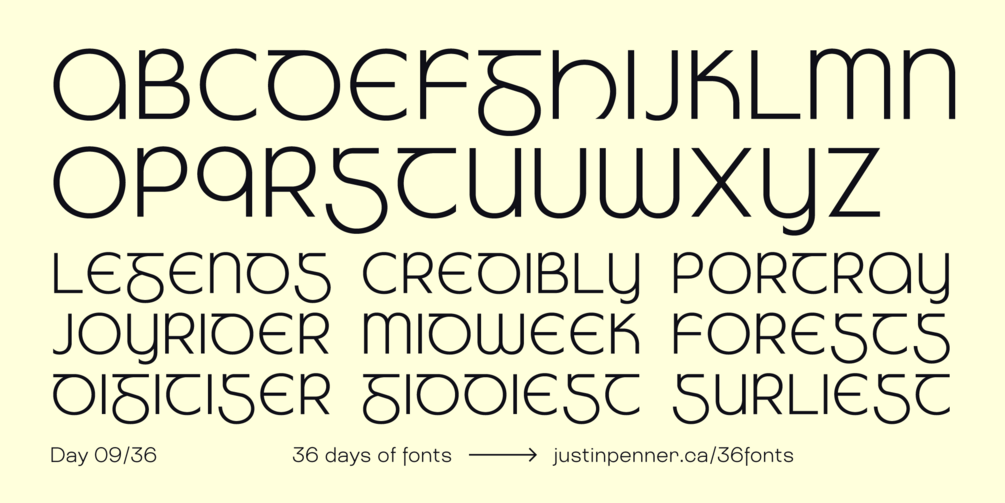 Follow the 36 Days of Fonts project for a new font every day! Post your feedback on Instagram or send me an email justin@justinpenner.ca. If you use this font, show me your work or tag it #36fontsinuse, and if you want to see it expanded to a full character set, let me know!